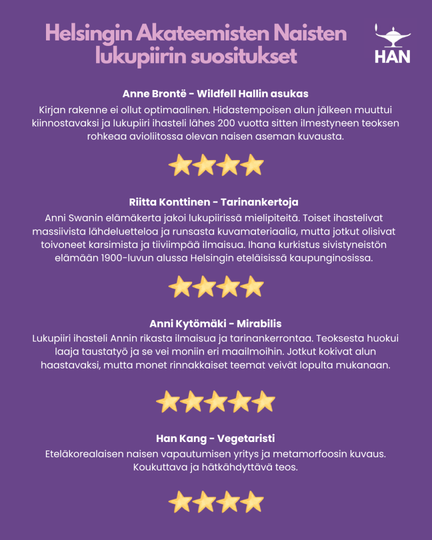 Lukupiirin suositukset edelliseltä kaudelta